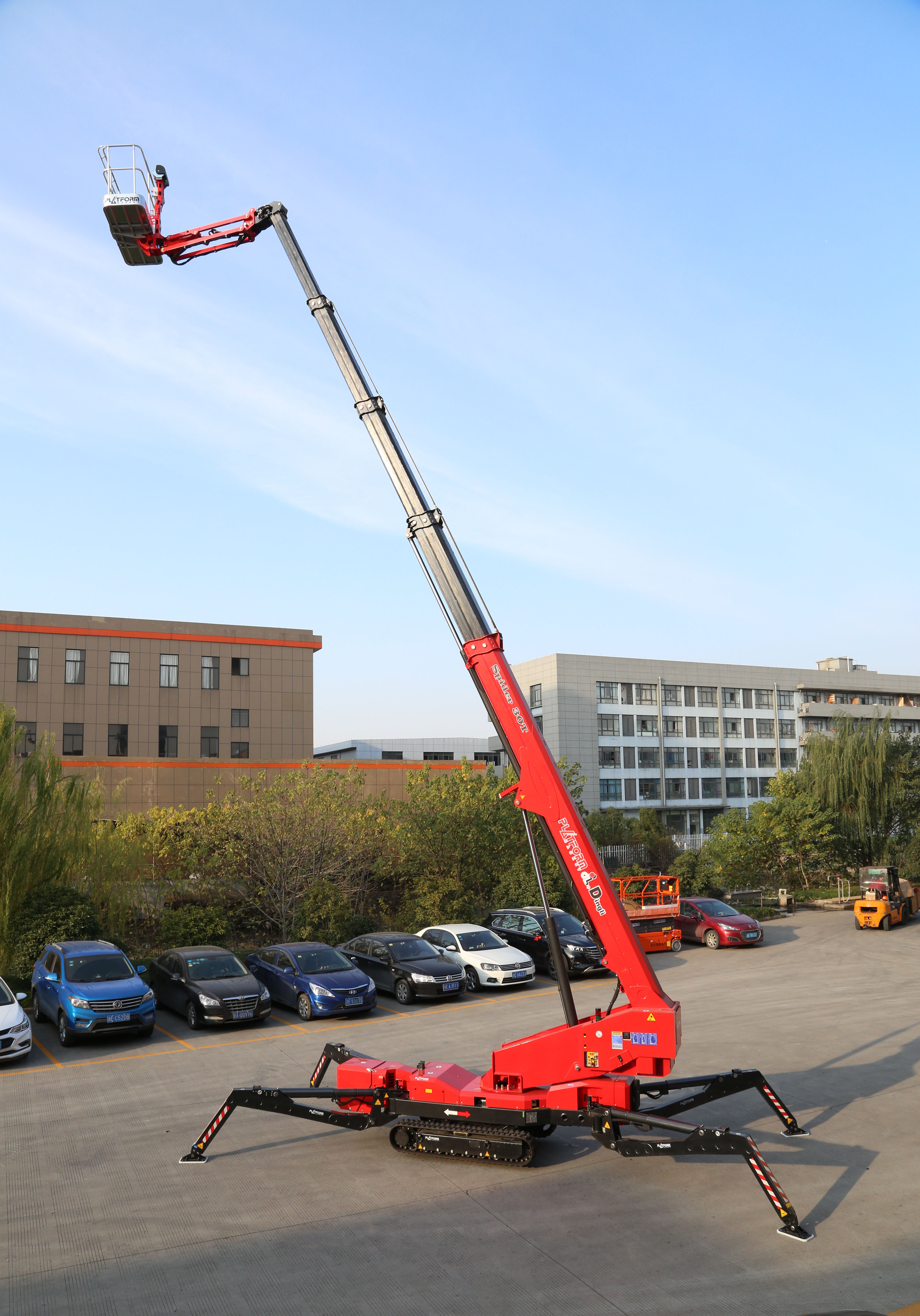 传统臂式工作高度超过15m往往尺寸偏大,稍显笨重,整机重量超过10吨。蜘蛛车采用履带式设计,车型紧凑,宽度不超过1.5米、高度不超过2米,即便是工作高度到达30米,其重量基本也不超过5吨,不仅运输方便,还可轻松进出房屋,通过性强。