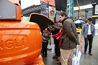 鼎力参展品种全,数量多,涵盖了自行走直臂式、曲臂式、剪叉式、铝合金桅柱式、高空取料平台等五大系列60多款产品参展。其中,GTBZ28S、GTBZ24S、GTBZ16AE、GTBZ19AS、JCPT1819ERT、AMWP11.5-8100等多款自主研制的新产品在展会上首次亮相。如GTBZ16AE是一款以高容量蓄电池作为动力,工作高度为16米的曲臂式高空作业平台。紧凑的结构设计,360度转台旋转外加无污染的蓄电池动力输出,使得机器能够在室内狭小空间内自如作业。大尺寸的无痕轮胎,除了能应付室外复杂路面之外,也可在室内地板上自由穿行,吸引了众多客户的眼球。