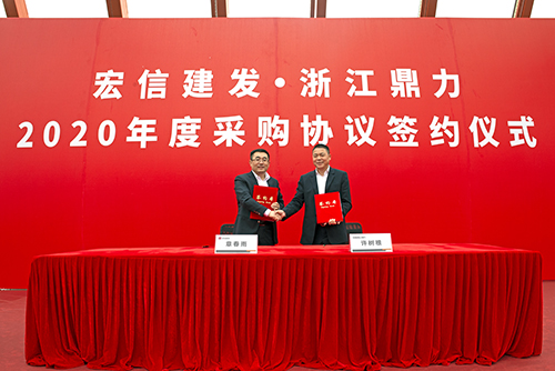 董事长许树根与宏信建发总经理章春雨签约合影