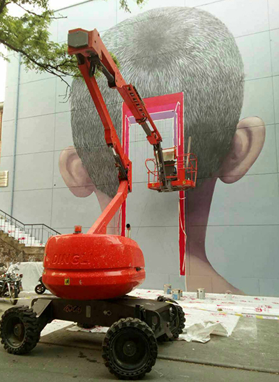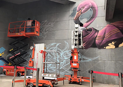 在涂鸦创作中,无论是线条勾画还是大面积上色都非常繁琐,还要携带颜料、机器等原料和工具,而高空作业平台的稳定和灵活功能让这项任务轻松了不少,可以让画师们挥洒自如地涂鸦。