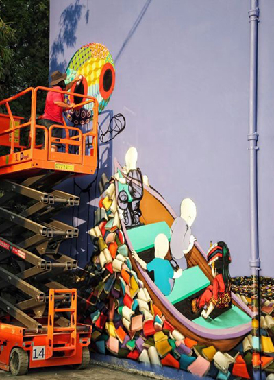 鼎力高空作业平台倾力相助,涂鸦是多么美好呀。