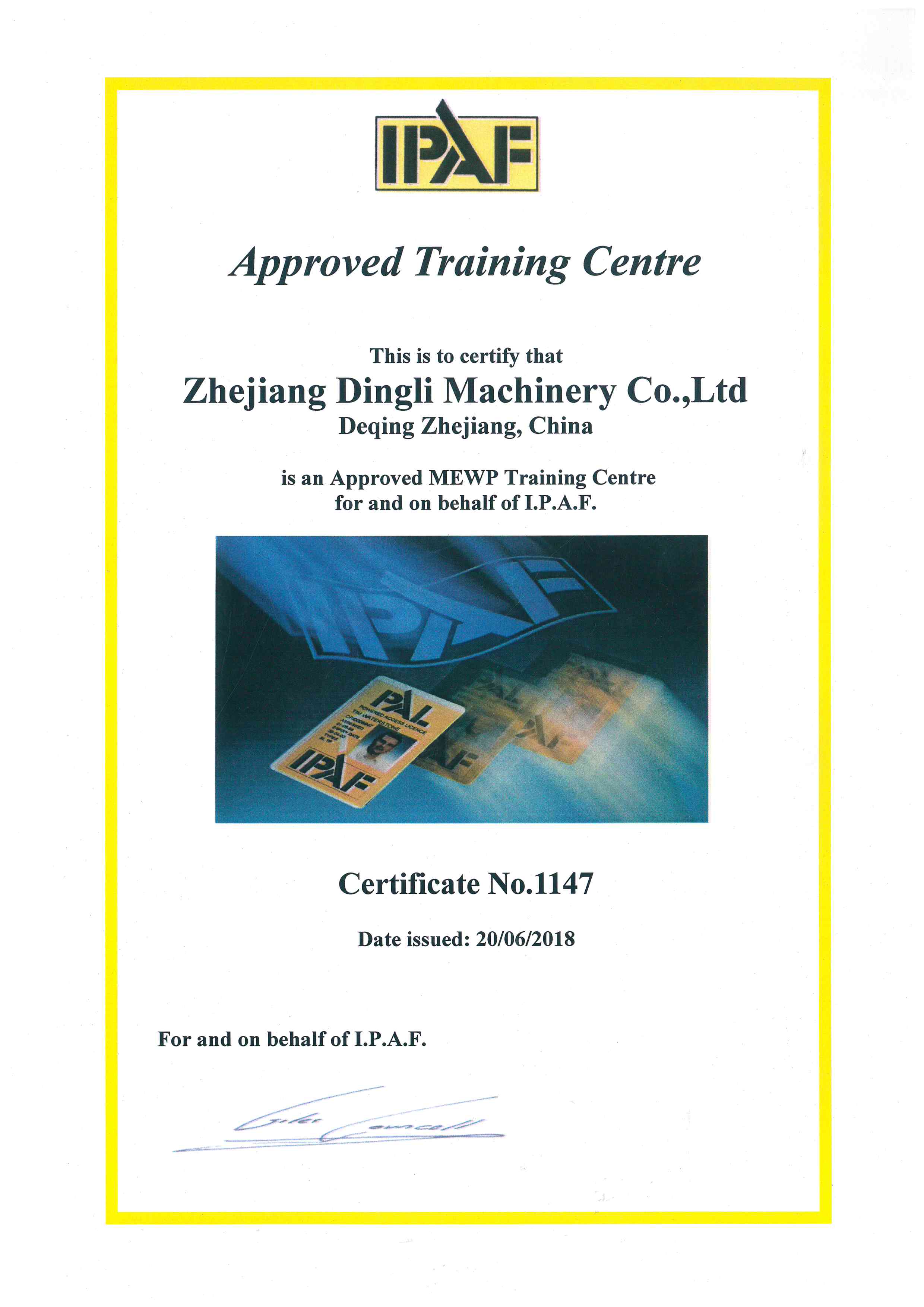 IPAF培训中心成立后,浙江