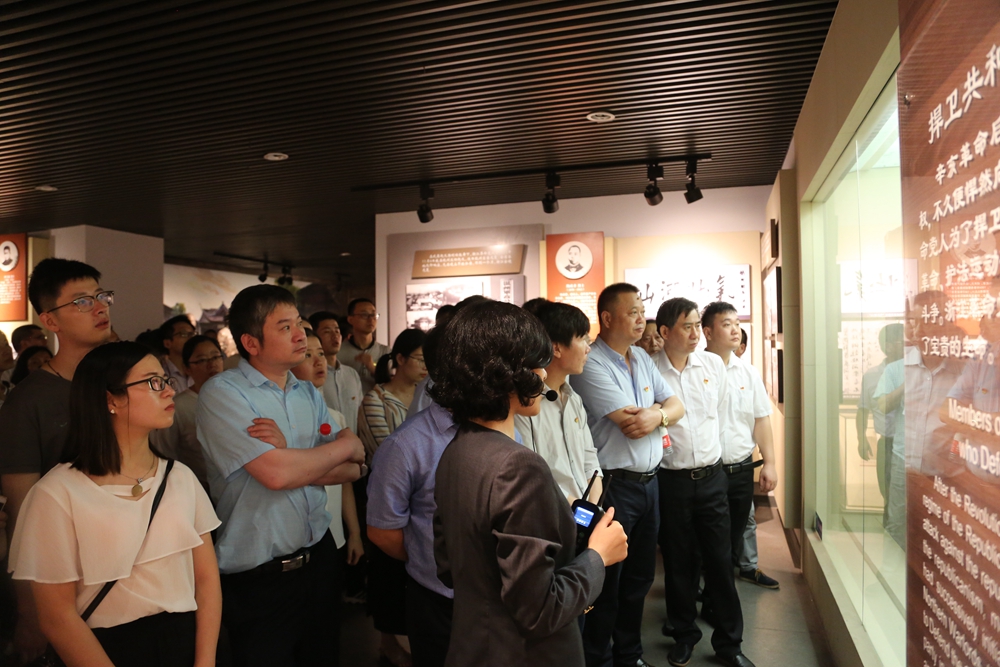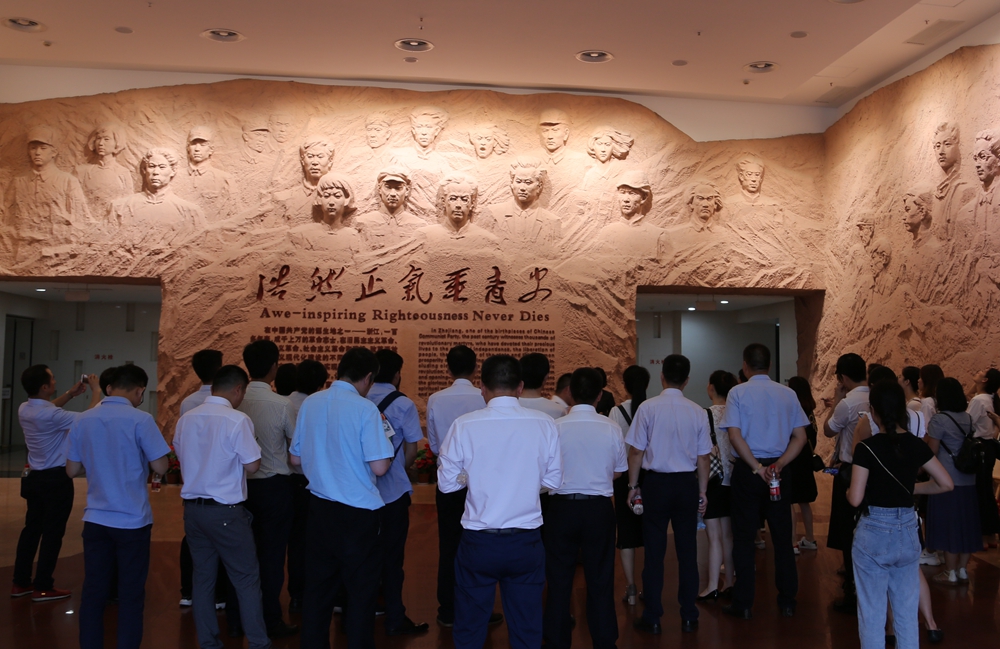 公祭仪式后,党员们跟随讲解员参观浙江革命烈士史料陈列馆。馆内陈列了浙江省自辛亥革命至社会主义建设时期350多位革命烈士的事迹。1000余幅图片、400多件革命文物,更有雕塑、沙盘、油画、电影、录像等多种表现手法将革命烈士们艰苦卓绝、不怕牺牲的斗争场景描绘得栩栩如生,向党员们讲述了他们一个又一个可歌可泣的故事。