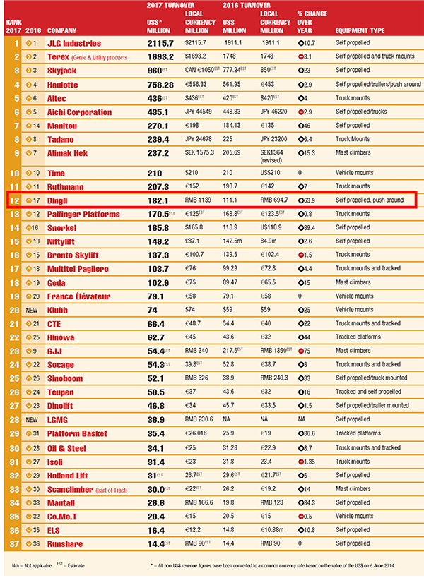 全球高空作业平台制造商20强榜单