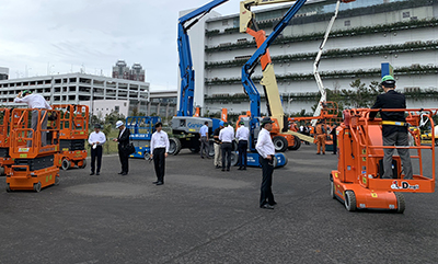 10月12日,日本最大的高空作业平台租赁公司Nikken公司在东京Ariake举办高空作业平台展示会,来自其旗下的240多家分公司经理参加展示会。