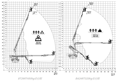 传统车型直臂式30米以下的平台荷载能力为300kg,鼎力 直臂式平台荷载能力最大可达450kg,传统车型曲臂式30米以下的平台荷载能力为230kg,鼎力 曲臂式平台荷载能力最大可达320kg。
