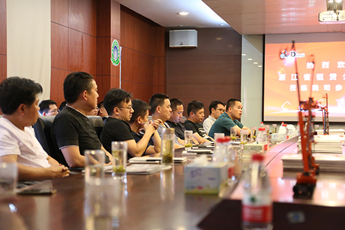 董事长许树根首先对租赁公司客户们的来访表示热烈欢迎,并向他们介绍了鼎力一直以来的产品研发目标,即从租赁公司角度出发,解决他们的痛点与难点。鼎力与意大利联合研发的新臂式系列产品便是如此,通过模块化设计、下沉式设计、工程机械专用车桥等优势使租赁公司效益最大化。