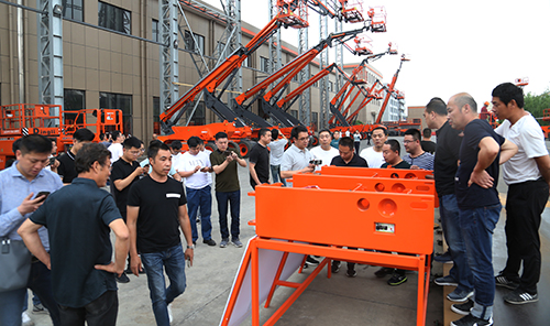 随后,副总陈金晨从研发目标、设计理念、零部件选购、产品性能等方面详细介绍了新臂式系列产品,并表示新臂式系列在研发过程中除了保证安全性能、动力性能外,还积极追求更高层次的舒适性能,是为租赁公司量身定做的高空作业平台。