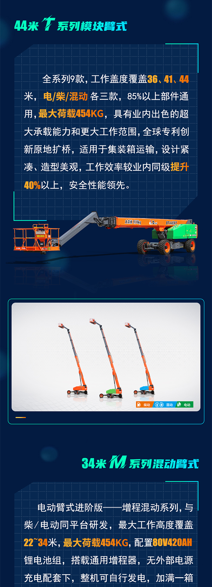 零排放、无噪音、长续航、大载重、强动力、易维保、高底盘、操控稳、易运输……