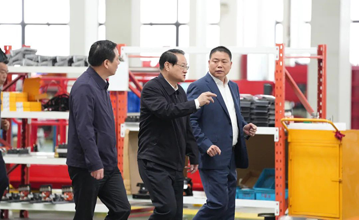 在鼎力四期,易炼红书记实地走访生产车间,重点参观智能总装流水线。得知鼎力当前生产经营势头强劲、创新发展稳步推进后,易炼红书记感到欣慰。