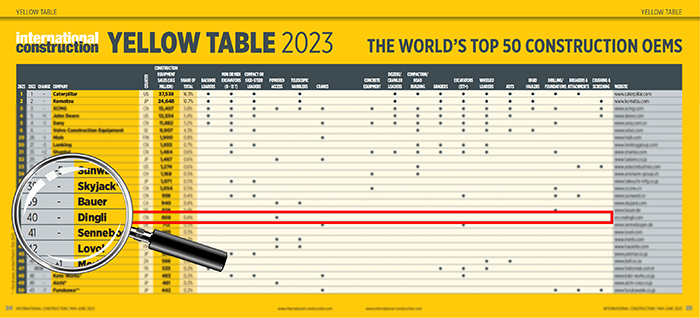 近日,世界领先的工程机械信息提供商——英国KHL集团发布2023年全球工程机械制造商50强排行榜(Yellow Table 2023),作为全球公认最权威、客观公正的排行榜之一,鼎力位列榜单40位,跻身40强。