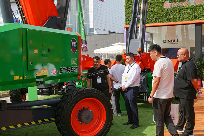 现场,由T系列44米电动直臂BT44ERT最受欢迎,其一键原地扩腿无需行走、动作效率提升40%、高压动力电池长续航等优势好评不断。