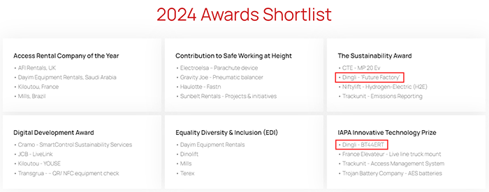 【摘要】2024年国际高空作业平台评选活动(IAPA)各奖项入围名单正式揭晓,鼎力上榜4大奖项。